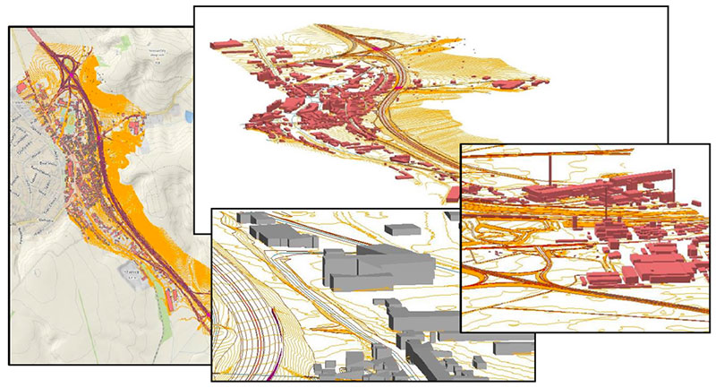 Šíření hluku v oblasti vyžadují hygienické stanice nebo stavební úřady jako podklad pro stavění, kolaudační nebo územní řízení. Dále je možné popsat úrovně hluku v rámci již realizovaných např. dopravních staveb (dálnic, komunikací s vysokým provozem atd.). Pomocí digitální fotogrammetrie tvoříme z leteckých snímků reálný model všech objektů v zájmovém prostoru. Tyto 3D data jsou dále využita pro zpracování konkrétní hlukové studie. Na základě 3D fotogrammetrických dat a výpočtu šíření hluku je navrhnuto opatření, které sníží hladinu hluku v zájmovém prostoru.